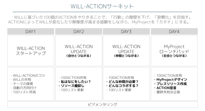 ―素敵なWILLですね。そのWILLに対して自ら活動を起こすのがWILL-ACTIONサーキットですが、「やることを好きに決めていい」という中で、どのようなアクションをしたのでしょうか。また、どういうプロセスでアクションを決めたのですか。